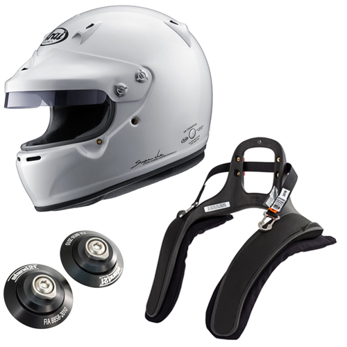 Package includes Arai GP-5WP Full Face Helmet and Stand 21 Club Series 3 FHR and Posts