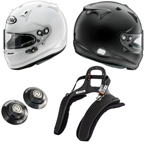 Package includes Arai GP-7FRP Full Face Helmet and Stand 21 Club Series 3 FHR and Posts