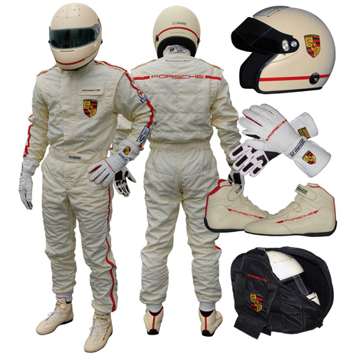 A timeless Porsche tradition consisting of Suit, Helmet, Boots and Gloves, in Natural, Black or Red.