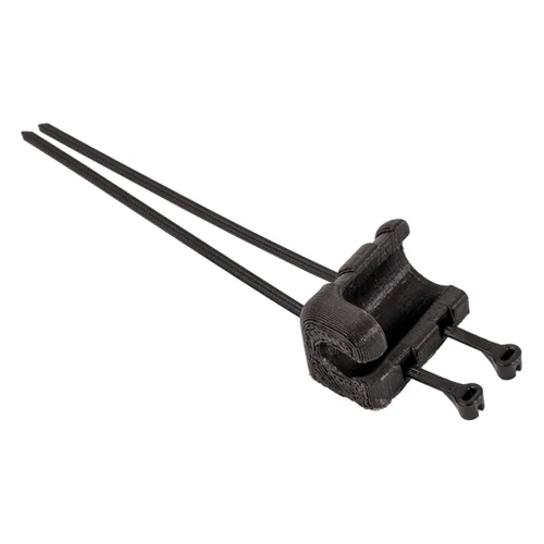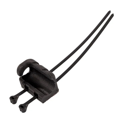 Printed from carbon PLA, this self adhesive radio connector holder sticks easily onto your choice of which side of your helmet best suits your application. It has channels for zip ties and the end of the connector sits into a recess so it holds the connector firmly in place