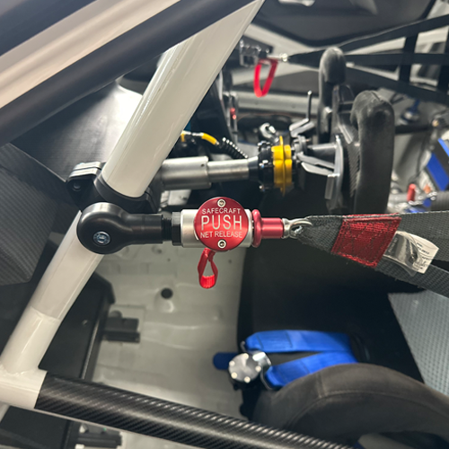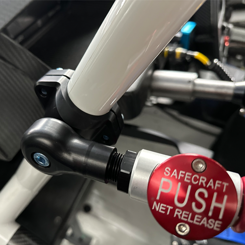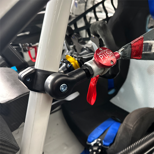 The new Safecraft Universal billet alloy roll cage mount is designed for retro fitting the Push Button safety net into a vehicle with an existing roll cage structure.