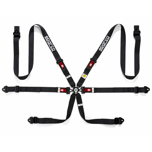 The Sparco 6-point endurance harness features 2” webbing for use with a FHR Device. The lap belt adjusters pull away from the buckle and with the lightweight steel adjusters, this harness is ideal for quick driver changes.